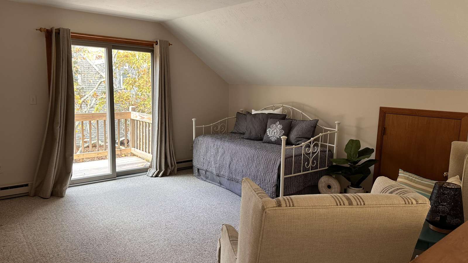 The layout offers three bedrooms and two full baths, providing a comfortable setup for families, couples traveling together, or friends sharing a classic Vineyard week. There is also a bonus loft space that includes a trundle bed for sleeping or just relaxing throughout the day.