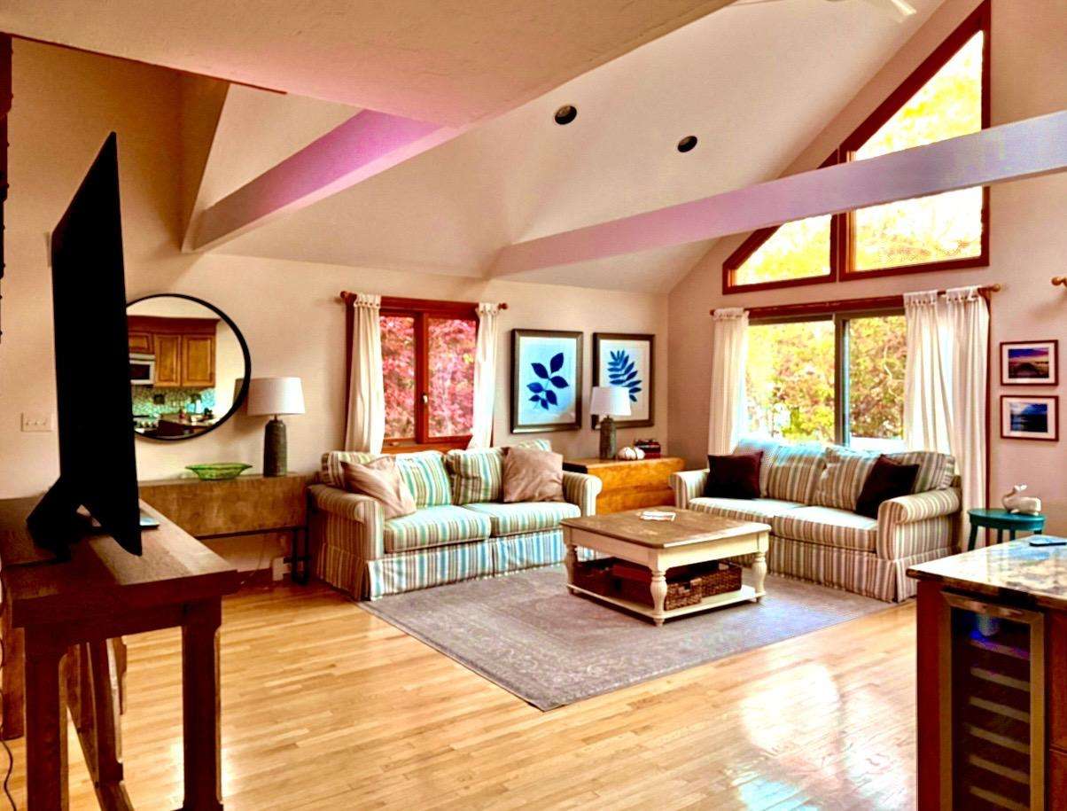 Tucked on a quiet Edgartown cul-de-sac, this bright 3BR/2BA retreat features an open-concept layout, soaring ceilings, a large deck, and central A/C—perfectly positioned between Felix Neck Wildlife Sanctuary and the State Forest.
