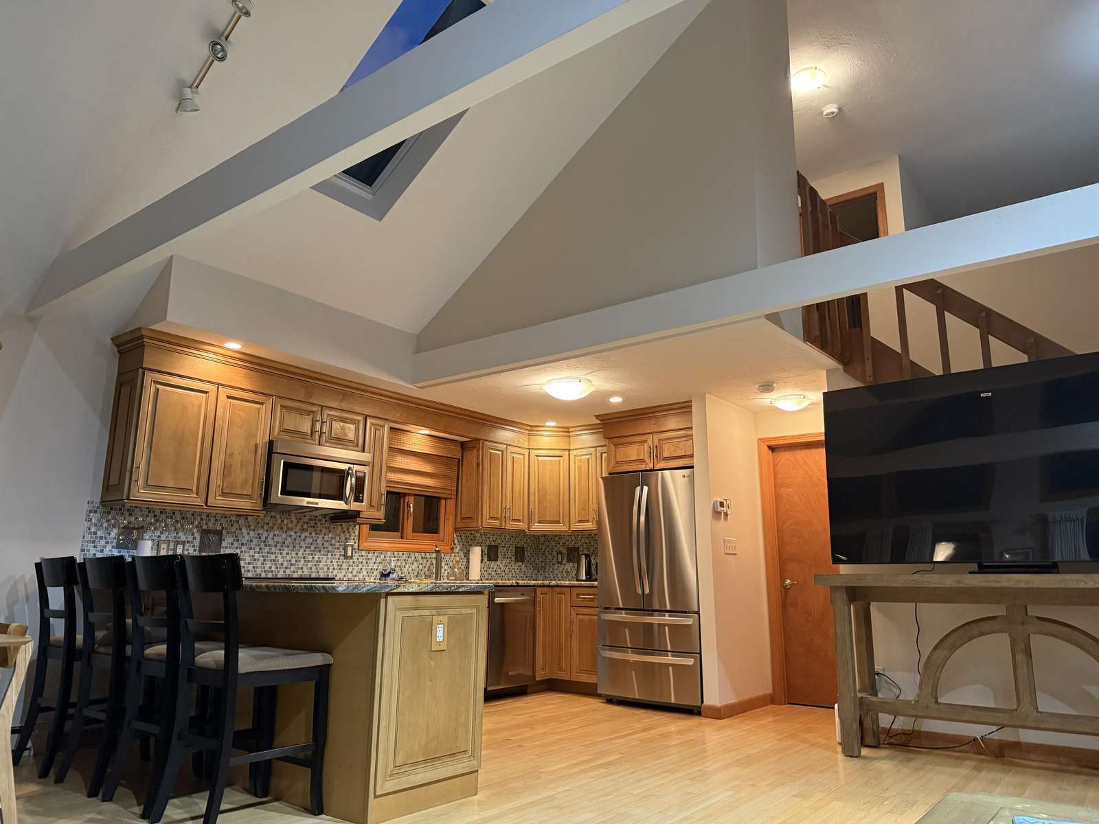 Inside, the home is designed for effortless vacation living: soaring ceilings, clean architectural lines, and abundant natural light create an airy, welcoming feel the moment you arrive. The open-concept main living space flows comfortably from living to dining to kitchen, making it just as suited for slow, cozy mornings as it is for hosting family dinners and casual evenings in.