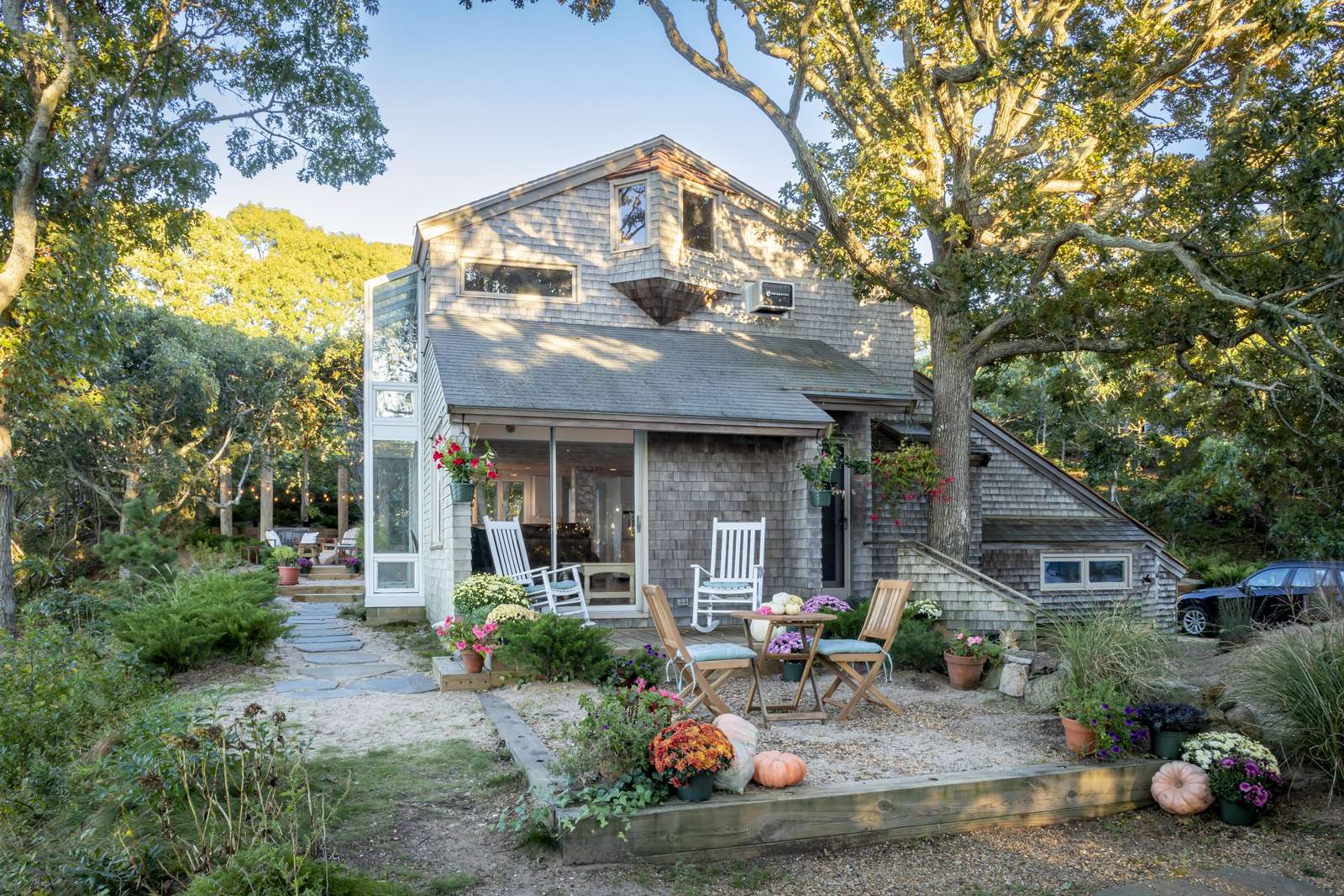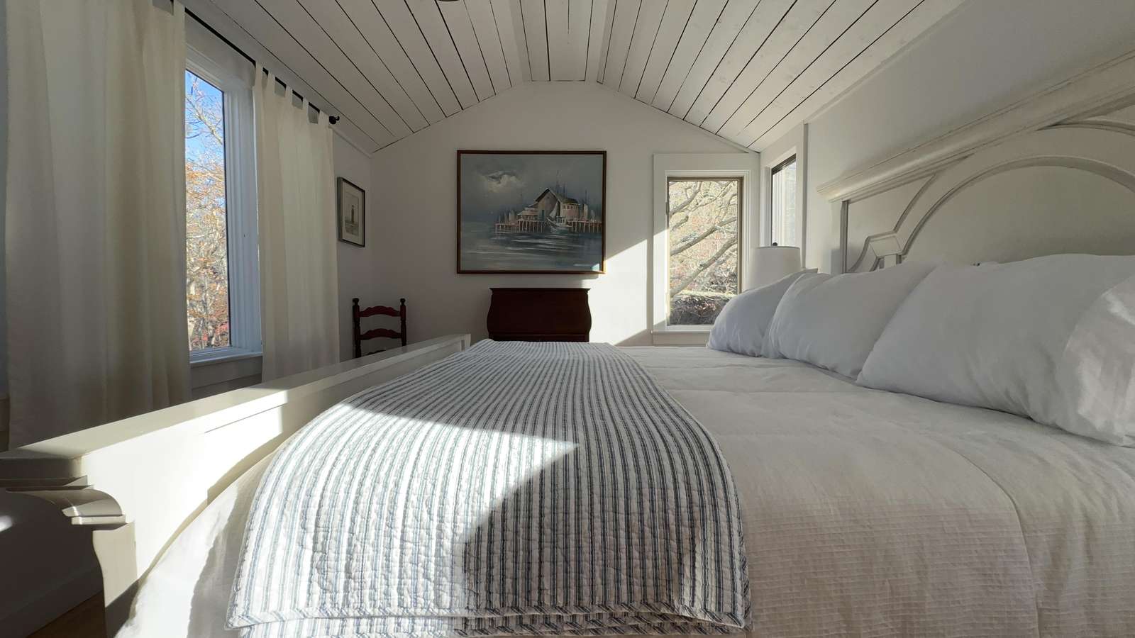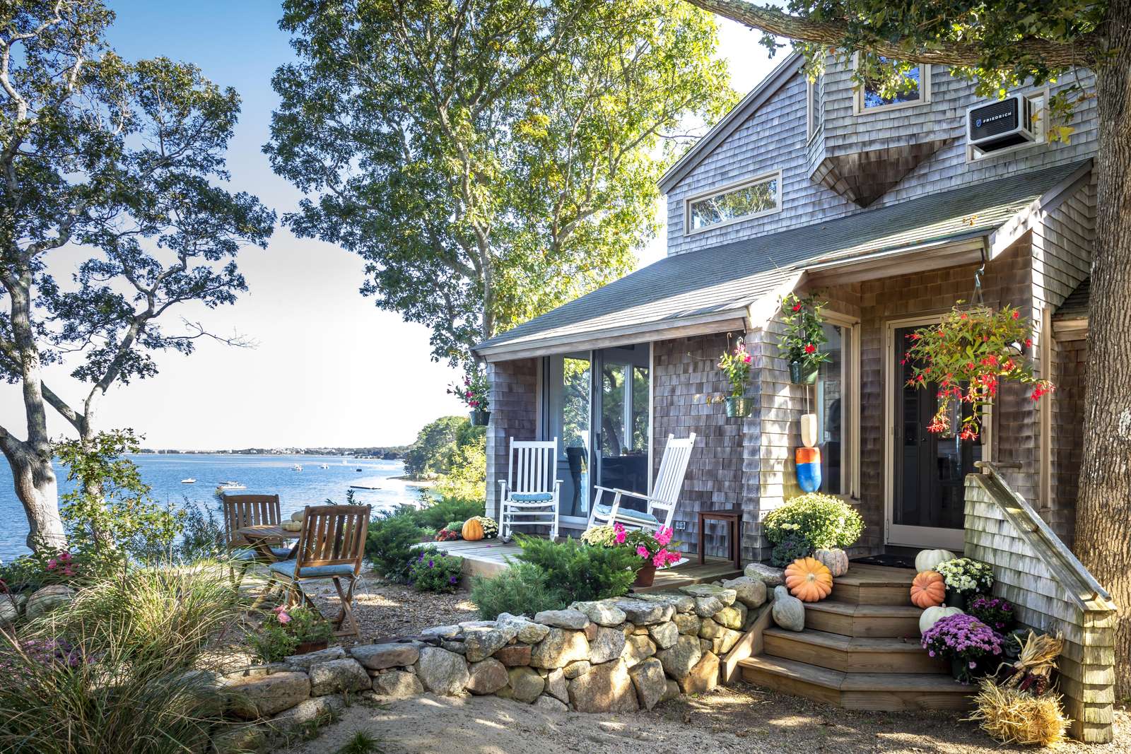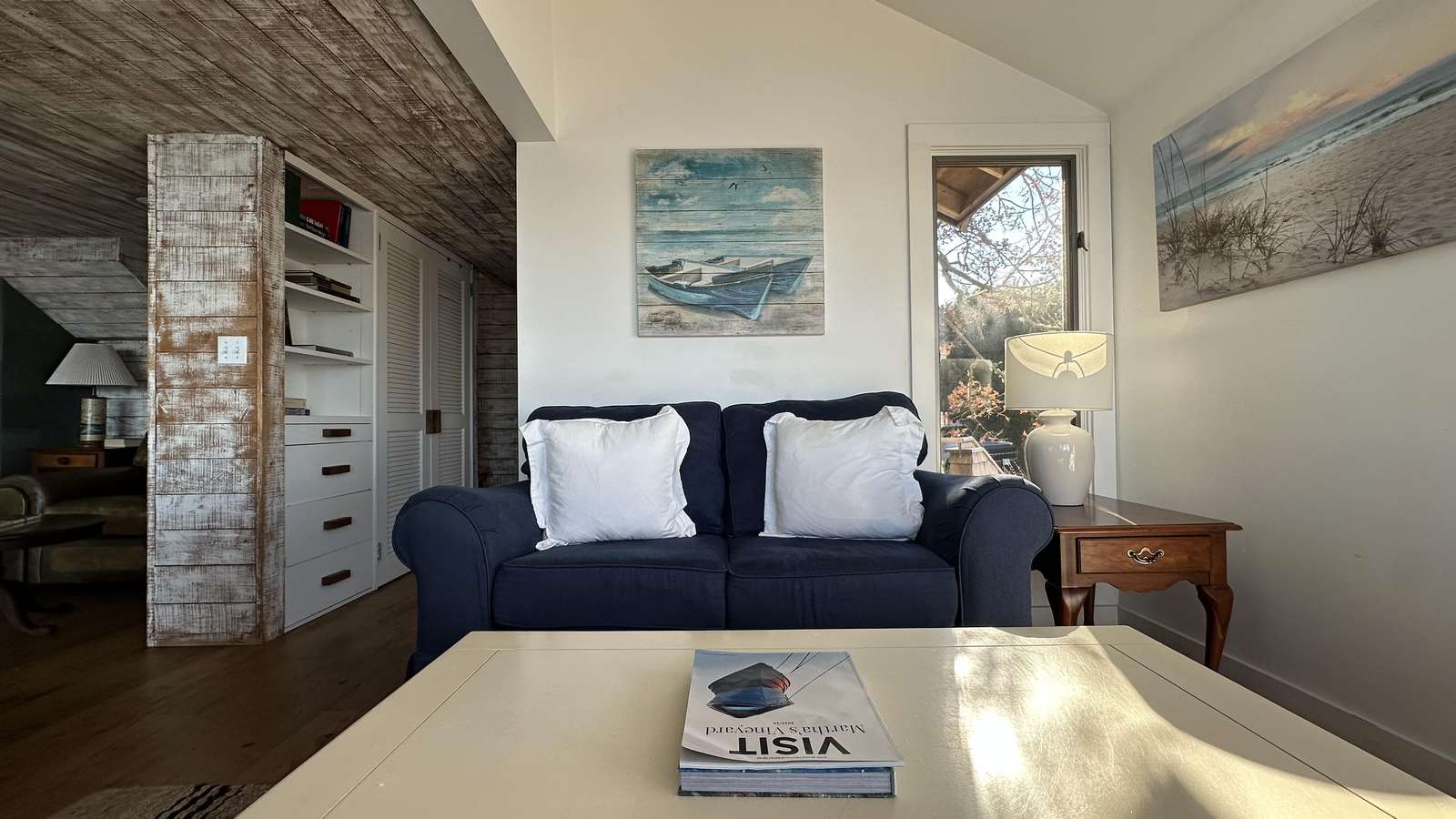 Stunning 3-level waterfront cottage perched above the Lagoon with panoramic views, private sandy beach, spacious decks, central A/C, and unforgettable sunsets. A true Martha’s Vineyard escape.