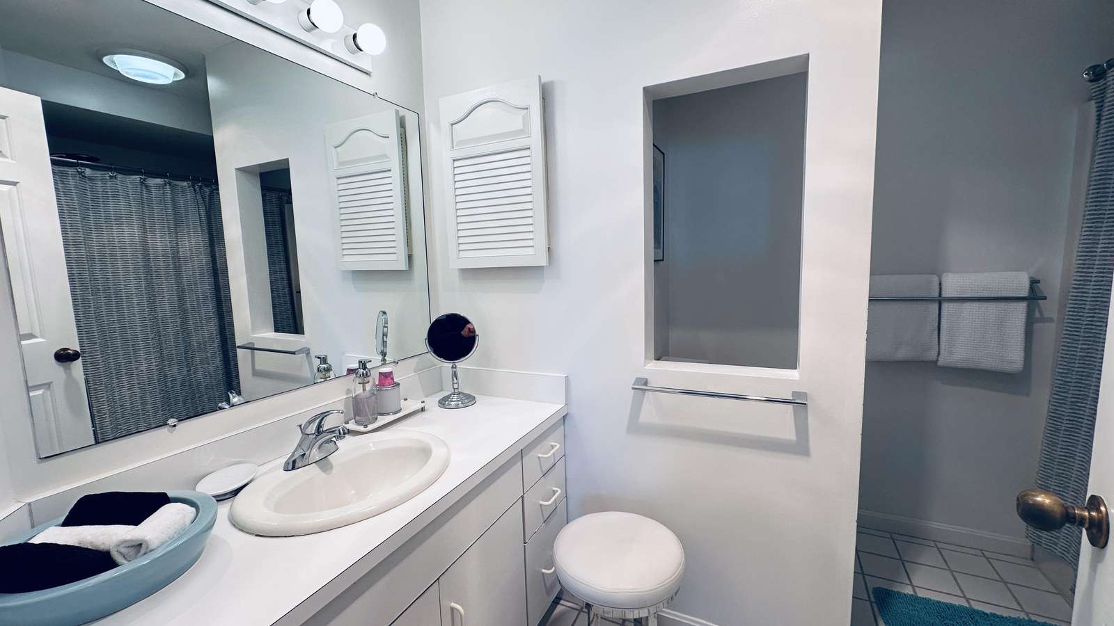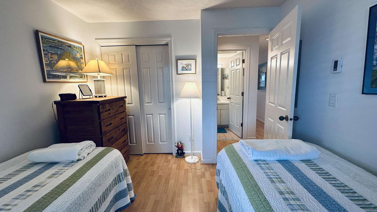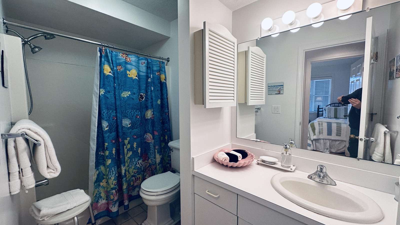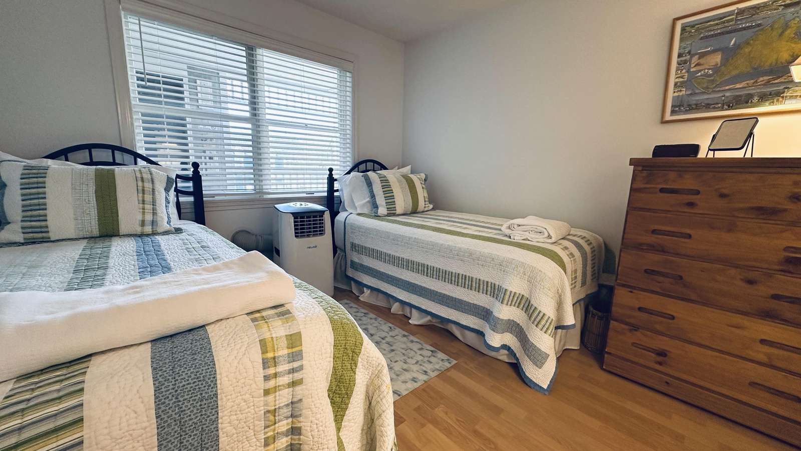 The well-equipped kitchen makes preparing meals effortless, whether you’re enjoying a quiet breakfast before heading out or hosting a casual dinner with friends. The layout offers privacy between the two bedrooms, making it ideal for couples traveling together or families seeking both comfort and flexibility.