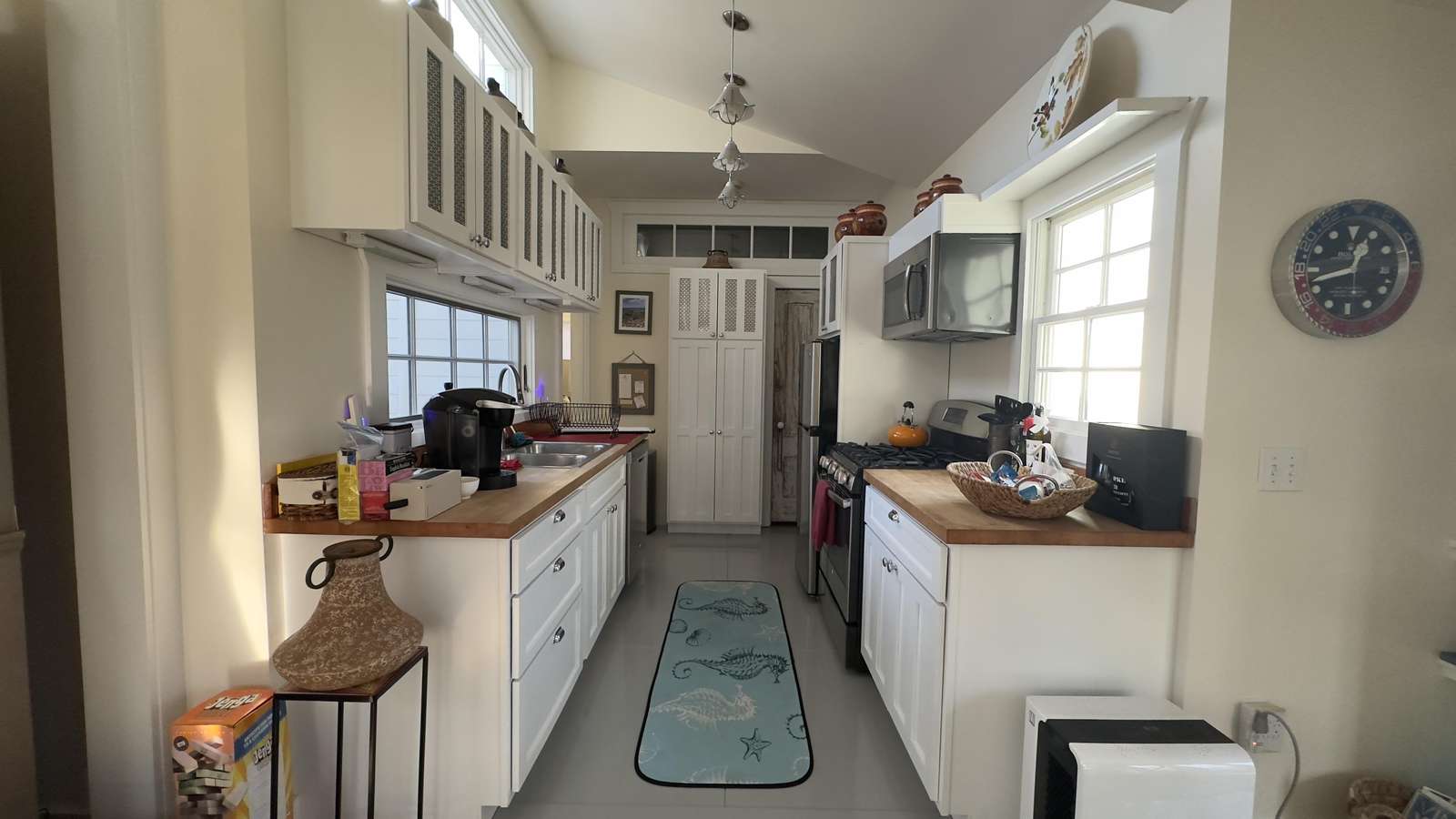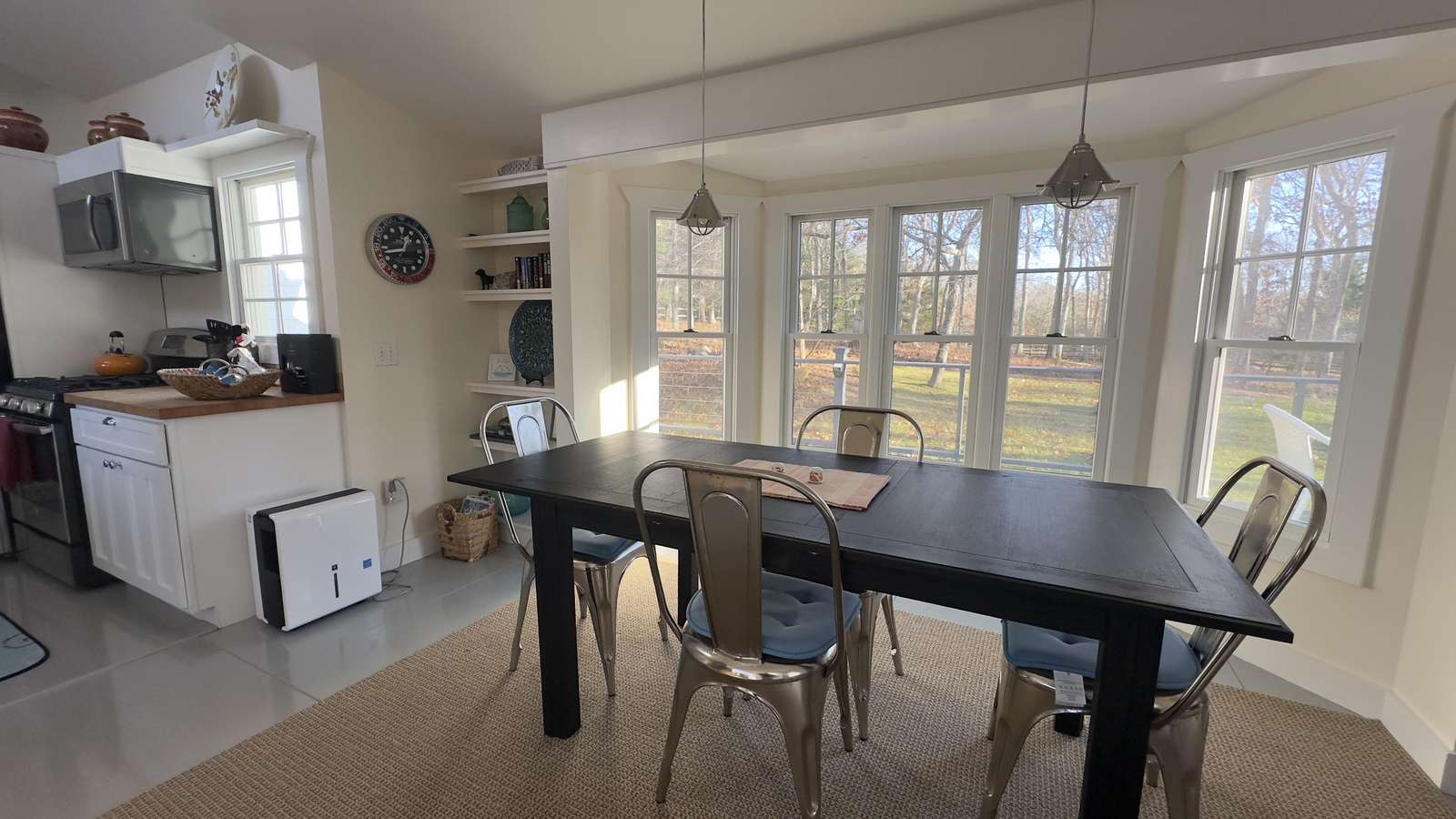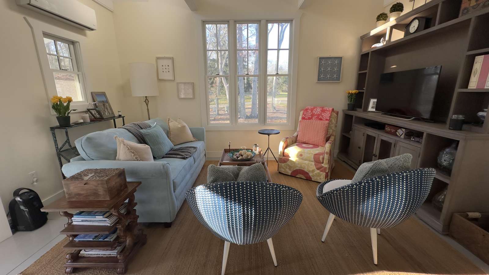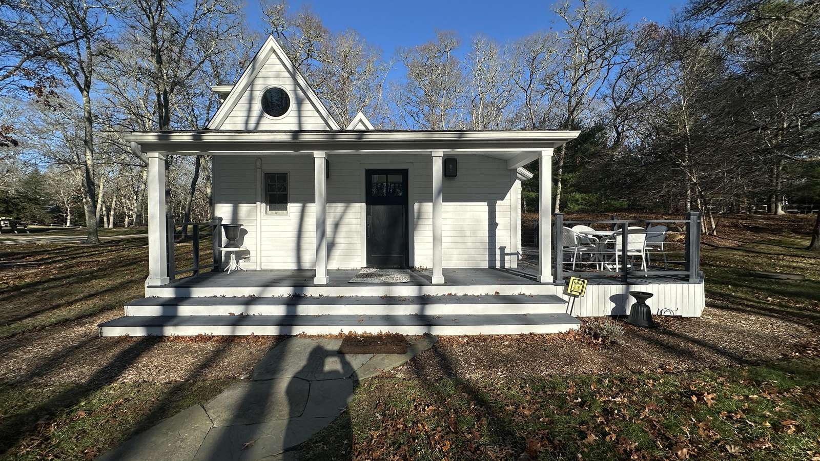 This inviting guest house features two comfortable bedrooms and a full bathroom, complemented by a bright and open living, dining, and kitchen area that creates an easy, welcoming flow for daily living. Whether preparing homemade breakfasts before a day at the beach or gathering for a relaxed evening meal, the open layout offers everything needed for casual Vineyard living. Large windows bring in natural light and showcase the surrounding greenery, reinforcing the sense of quiet seclusion that makes this location so special.
