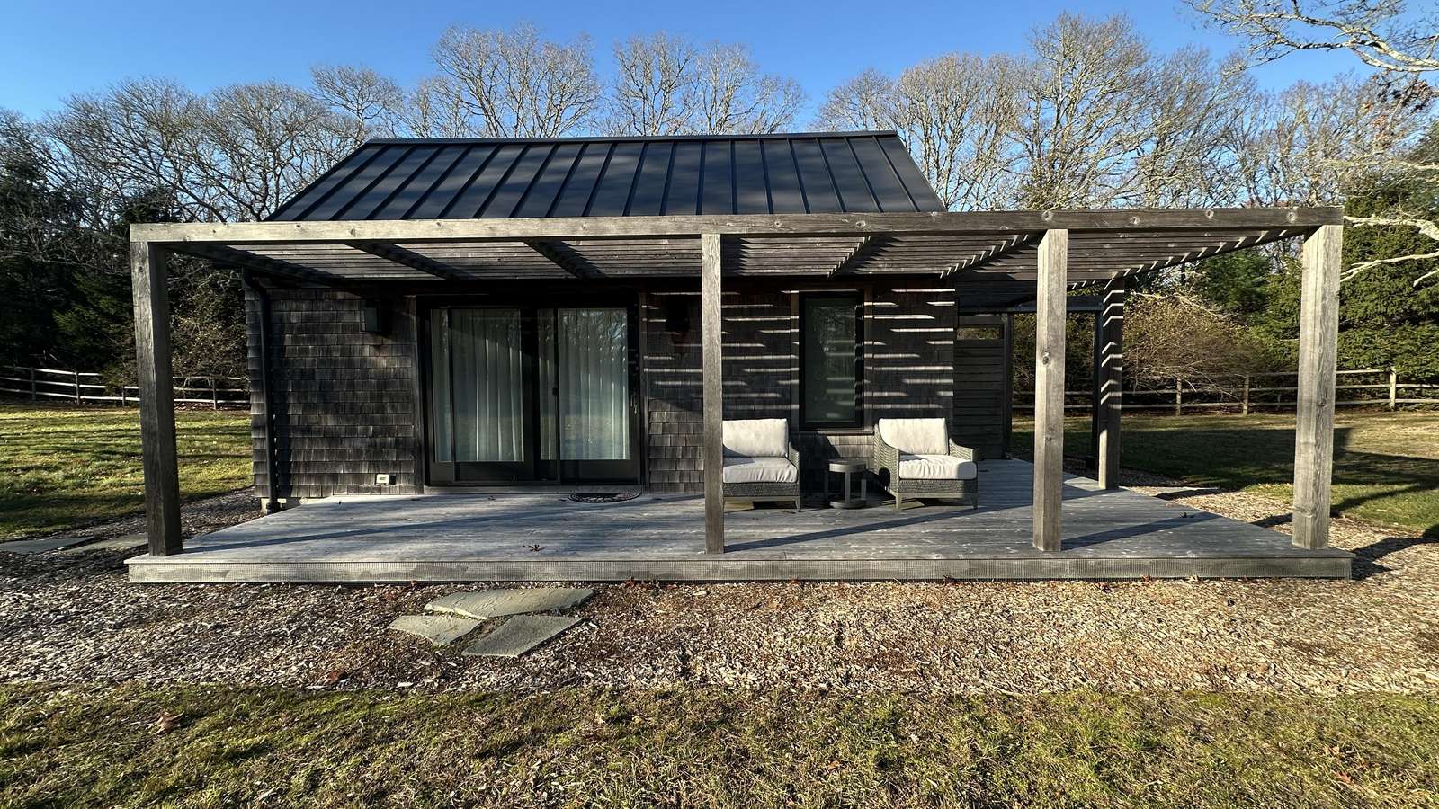 Tucked away on 4.5 private acres, this West Tisbury retreat offers a 3-bedroom main home plus a private guest cottage—outdoor showers, peaceful setting, and just minutes to beaches, towns, and island adventures.