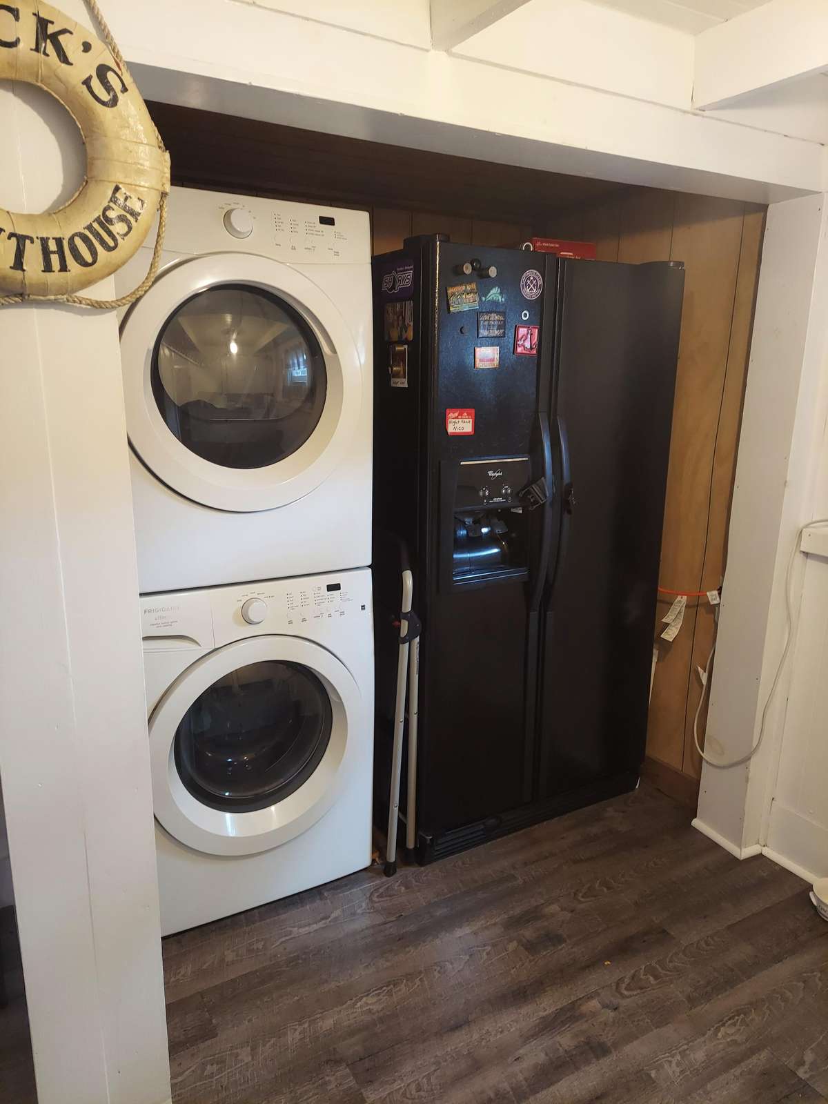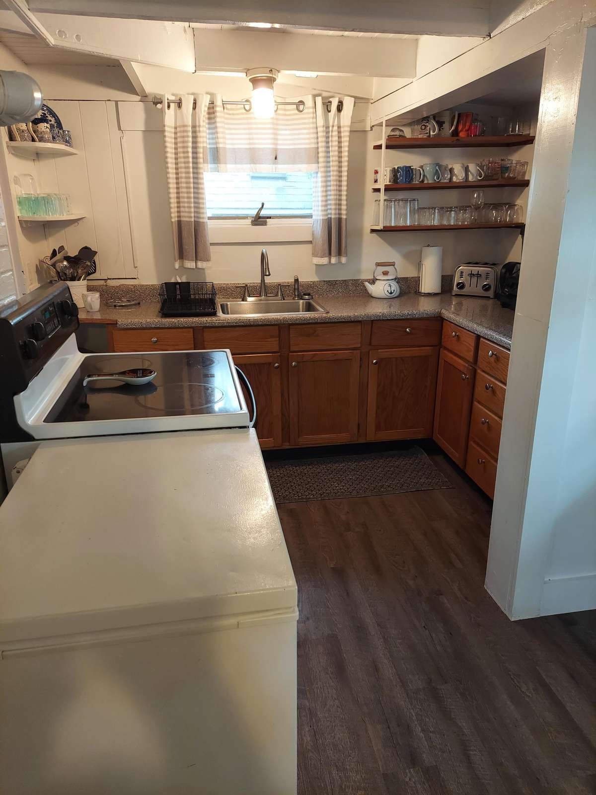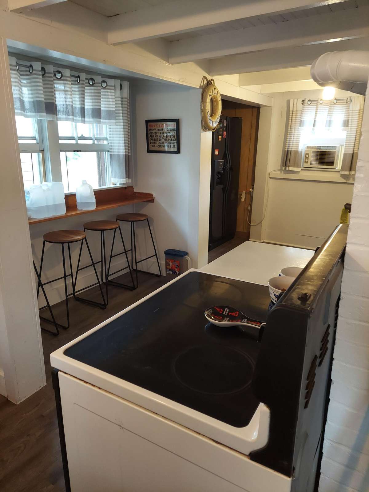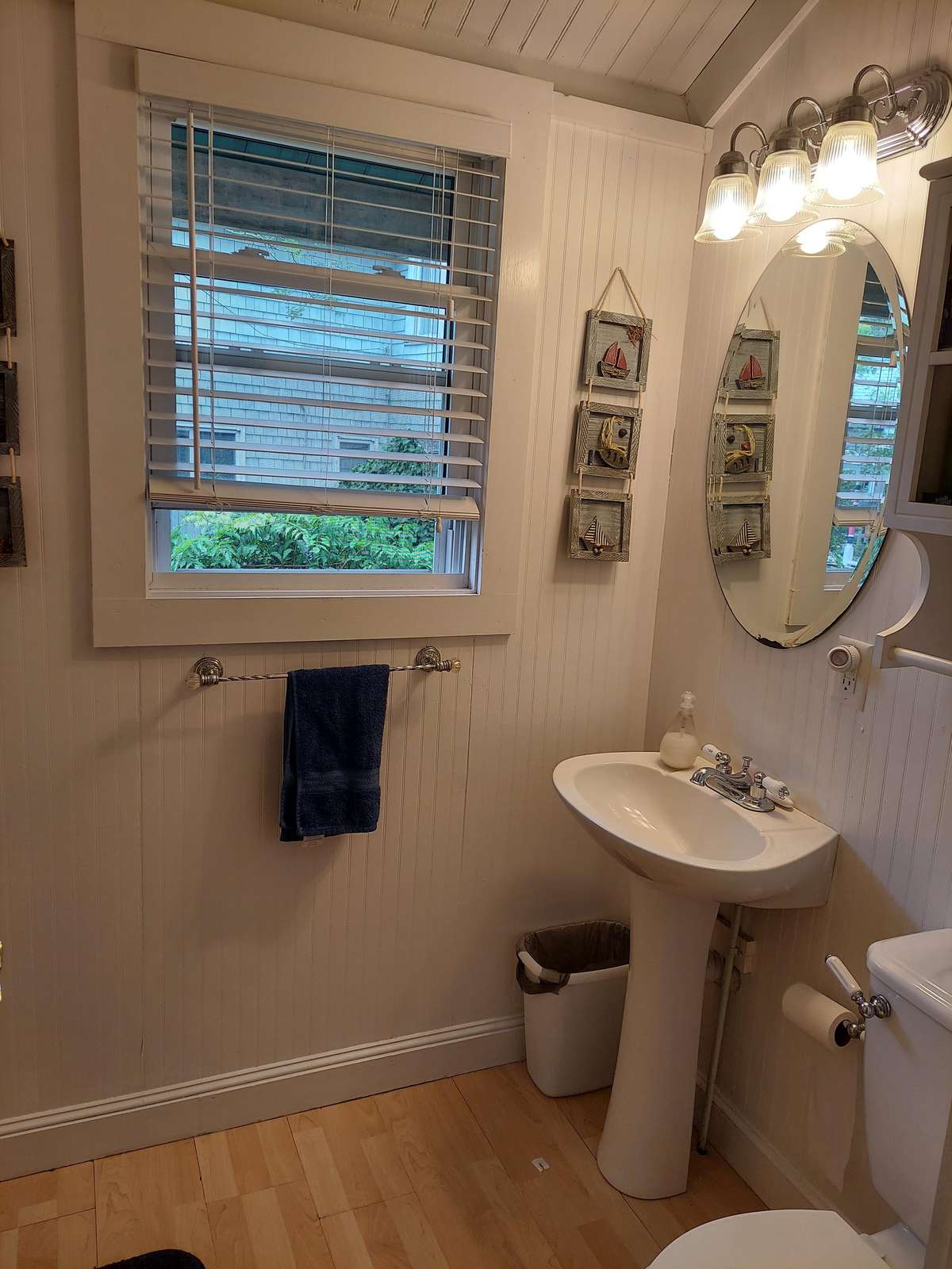 Outside, enjoy a covered front porch—perfect for slow mornings with coffee, breezy afternoons with a book, and evenings winding down after a day out on the island. The fenced yard provides a great outdoor area for games, lounging, and casual summer living. On-site parking adds extra ease throughout your stay. And there is a wonderful outdoor shower to enjoy.