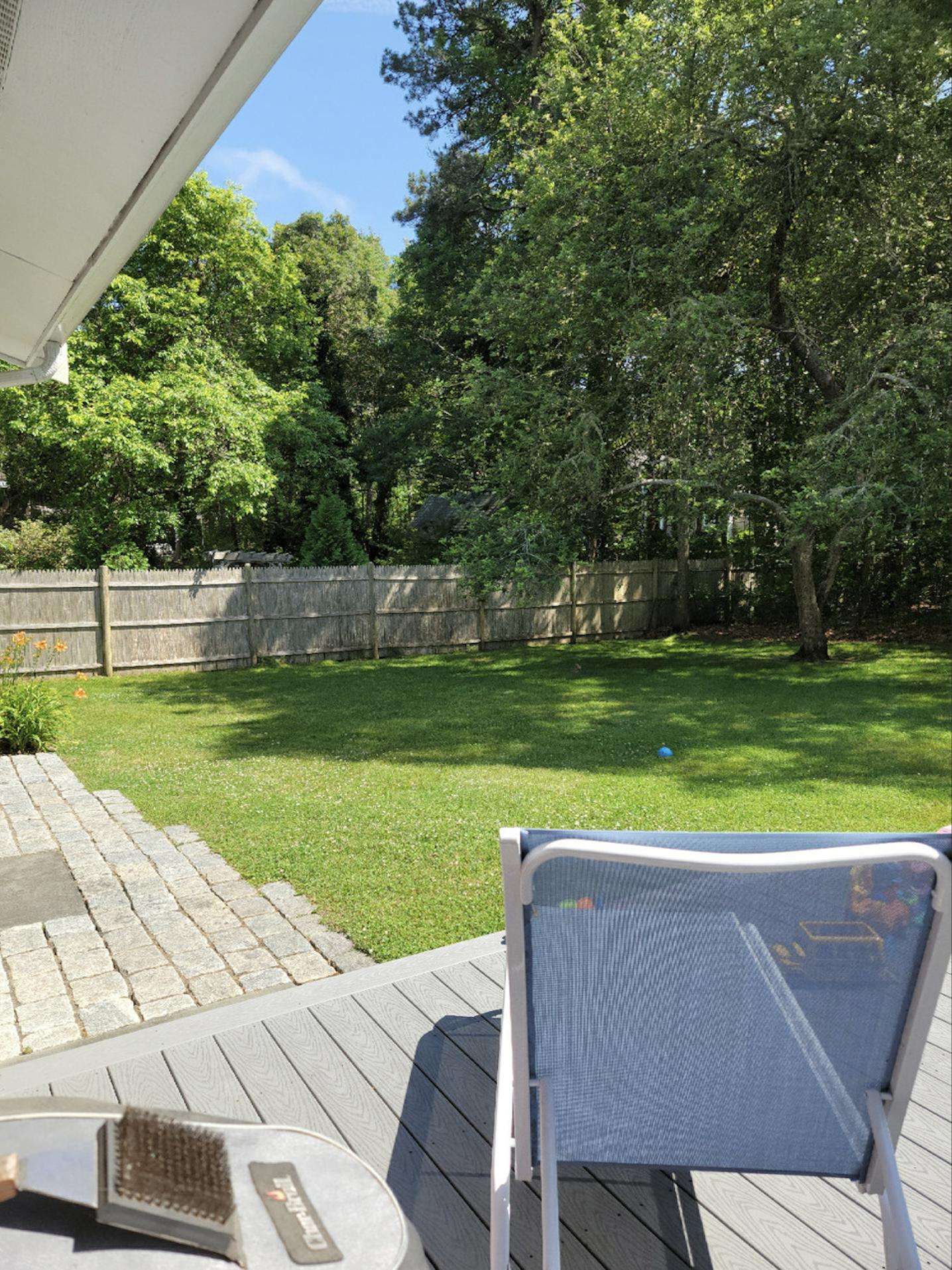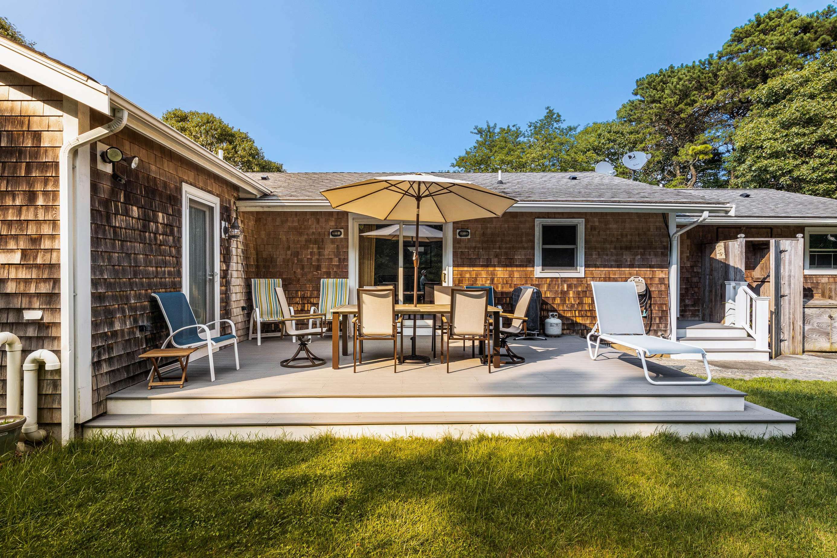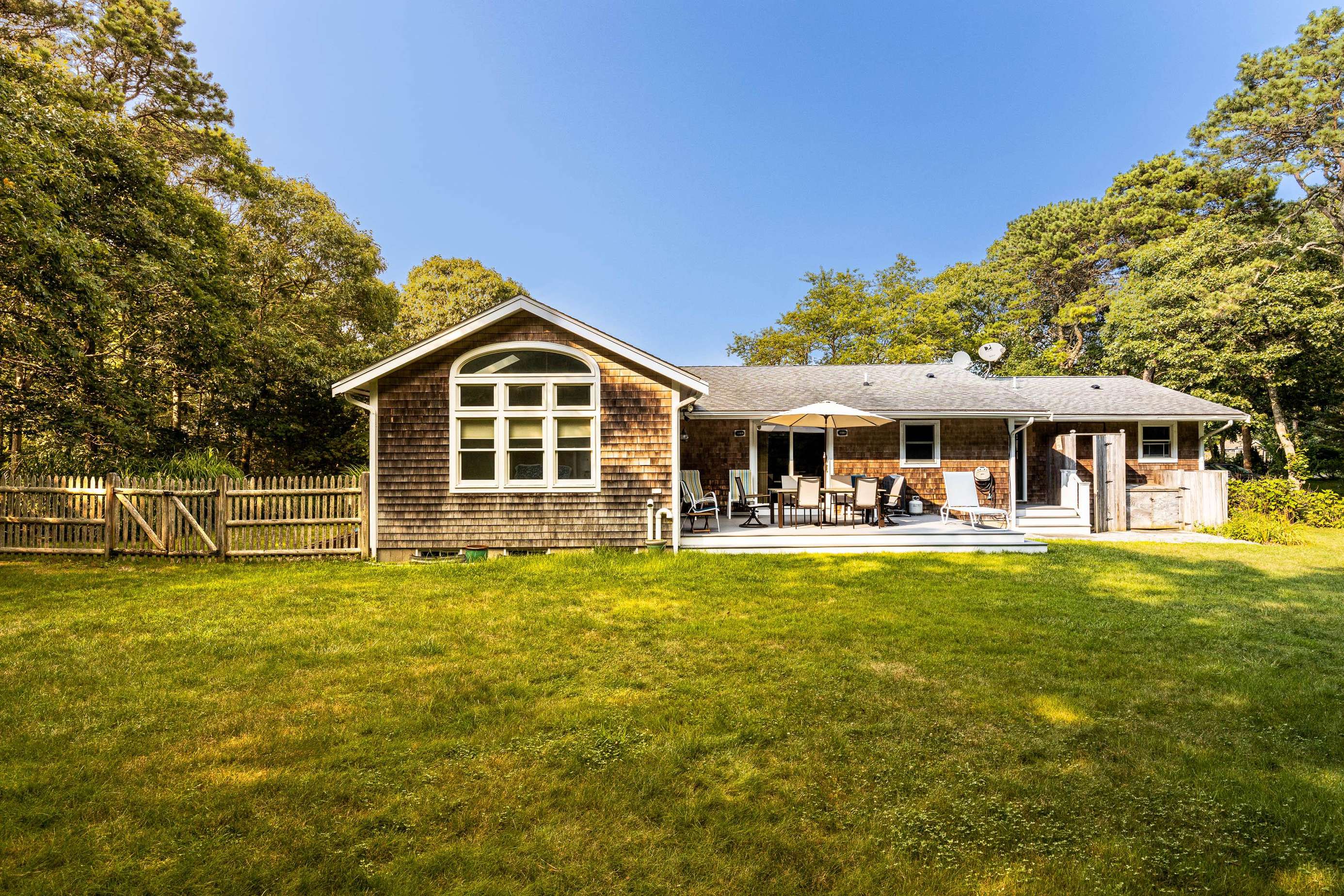 Outdoors, enjoy a sunny back deck with dining and lounge areas, surrounded by lush greenery for privacy. Fire up the grill, unwind in the fresh Vineyard air, or rinse off under the outdoor shower after a day on the sand.