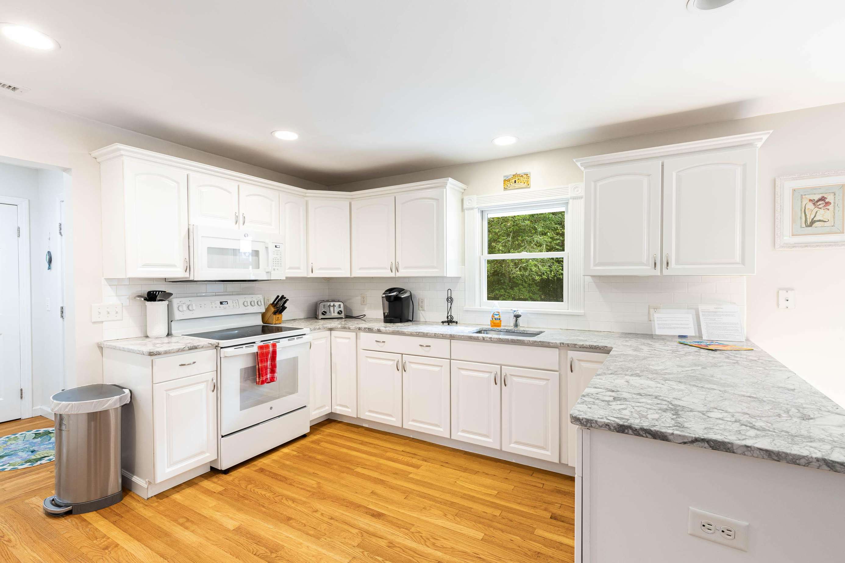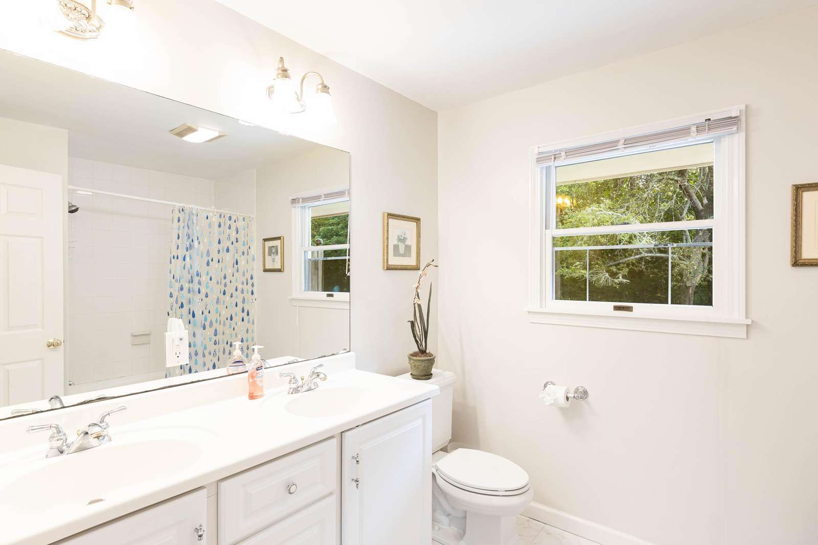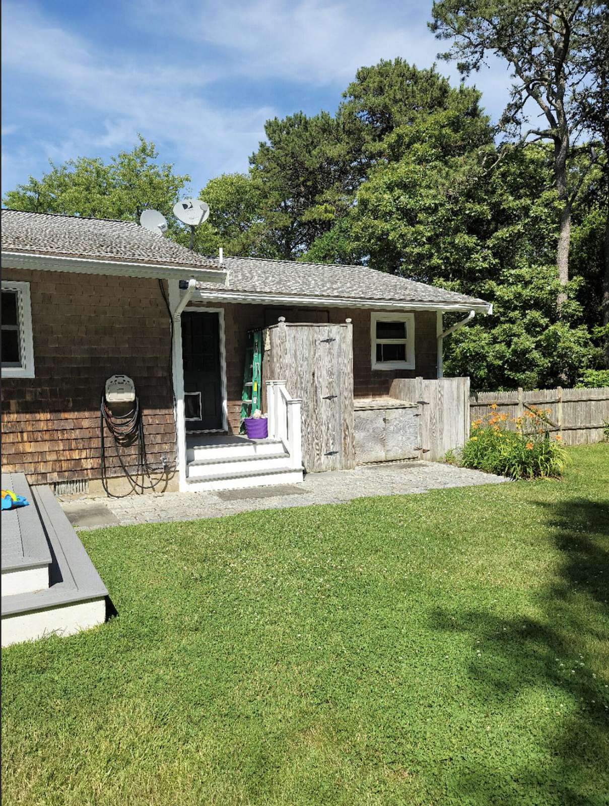Outdoors, enjoy a sunny back deck with dining and lounge areas, surrounded by lush greenery for privacy. Fire up the grill, unwind in the fresh Vineyard air, or rinse off under the outdoor shower after a day on the sand.
