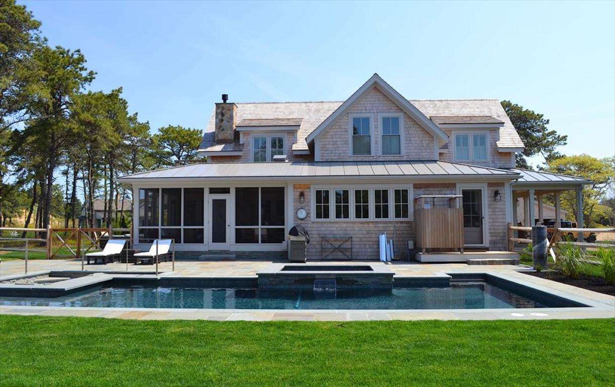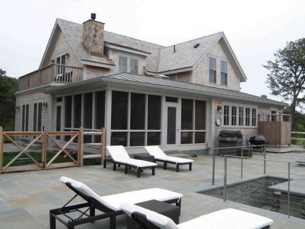 This stunning Katama retreat features top-tier finishes, a gourmet kitchen, screened porch with fireplace and TV, and a resort-style pool with swim-up bar and hot tub—perfect for an unforgettable Martha’s Vineyard getaway.