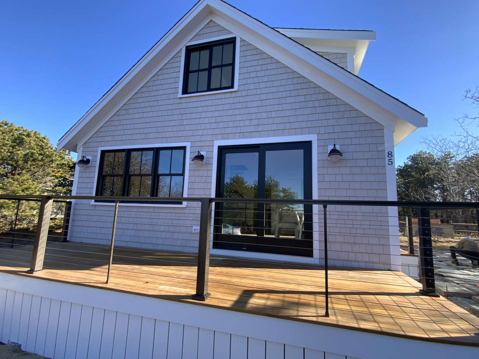 The open-concept living, dining, and kitchen area is the heart of the home, inviting both relaxation and gathering. Expansive sliders open directly to the generous sun deck, where serene bay views provide a stunning backdrop for morning coffee, sunset cocktails, or outdoor dining under the Vineyard sky. Crisp interiors are accented by natural textures and coastal details, creating spaces that feel both refined and welcoming.